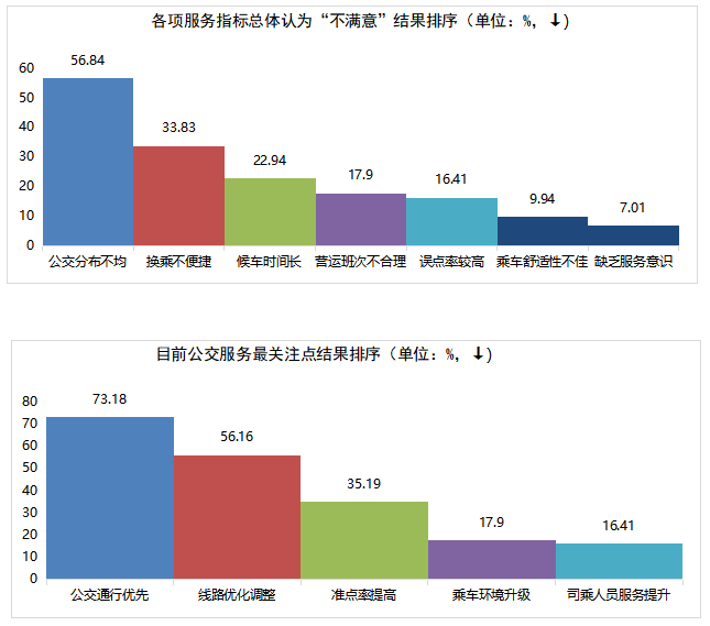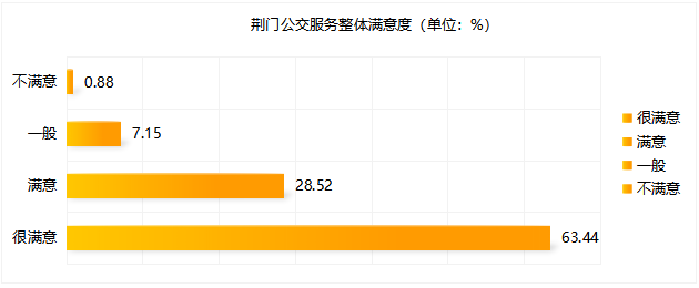 本次調(diào)查共收集有效問卷1471份,623條相關(guān)問題及建議。問卷涵蓋公交線網(wǎng)優(yōu)化、文明服務(wù)、換乘便捷度、候車時間、乘車舒適度、智能信息建設(shè)等多方面內(nèi)容。調(diào)查顯示,參與投票人群年齡結(jié)構(gòu)主要集中在18~59歲,其中以40~59歲為主體。(一)公交服務(wù)滿意度指標(biāo)及數(shù)值根據(jù)交通運輸部GB/T 36953.2-2018城市公共交通乘客滿意度評價方法,公共交通乘客滿意度指乘客對公共交通服務(wù)質(zhì)量的滿意程度,評價程度設(shè)置為“很滿意”、“滿意”、“一般”與“不滿意”。問卷顯示荊門公交服務(wù)整體滿意度為91.96%。問卷顯示公交線網(wǎng)分布不均、線路不合理、換乘不便捷為主要服務(wù)訴求,公交線路分布不均為“不滿意度”投票最高問題;主干道公交優(yōu)先通行權(quán)為服務(wù)訴求投票最高關(guān)注點。 此次問卷調(diào)查,感謝廣大市民乘客的積極參與,市公交集團(tuán)將結(jié)合實際,認(rèn)真聽取、采納乘客提出的意見及建議,予以改進(jìn): 關(guān)于線路運營方面,對5路線(圣境山—?;郏?、88路線(東寶碧桂園—楊家橋)、58路線(碧桂園北—漳河新區(qū)政務(wù)中心)、59路線(荊楚理工學(xué)院—掇刀區(qū)政務(wù)中心)早中晚客流高峰期加密營運班次和增設(shè)區(qū)間班次,對33路線(楚天學(xué)?!d化三路東)、69路線(雙喜小學(xué)—園博園東門)、13路線(牌樓—園博園西門)進(jìn)行線路優(yōu)化,方便沿線居民出行需求;近期擬開通碧桂園翡翠公館至長崗萬人社區(qū)、東寶政務(wù)中心至市政務(wù)中心公交線路,具體方案正逐步規(guī)劃中。