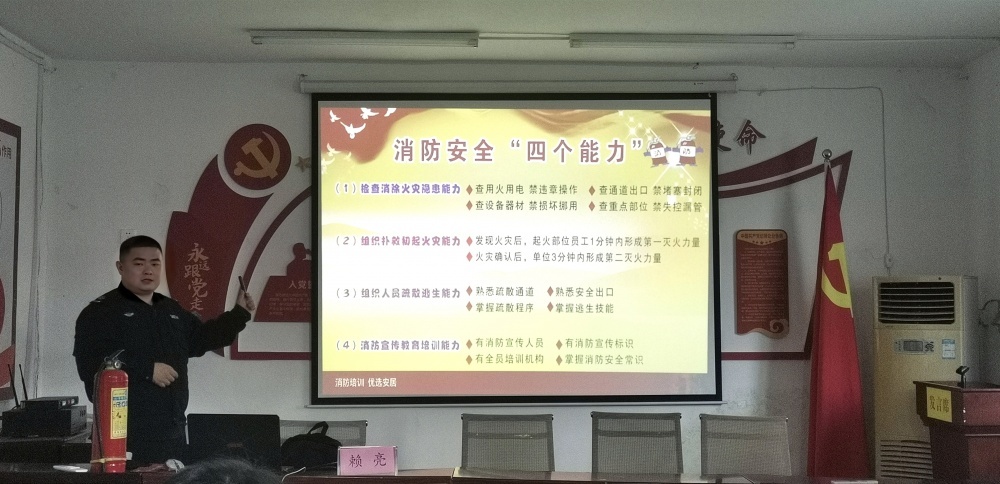 培訓中,賴亮教官首先通過播放火災警示視頻,讓干部職工直觀地認識火災危害,喚起大家對消防安全的高度重視。隨后賴亮教官結合多起典型事故案例進行消防安全知識授課,重點講解了火災的特性與預防、消防安全四個能力建設、火災應急處置等方面內容,同時現場對各類消防器材的使用方法及動作要領進行實操演示。