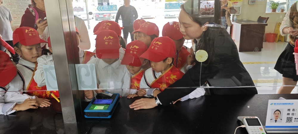 圖/在公交營(yíng)業(yè)廳,工作人員為同學(xué)們介紹了公交IC卡種類以及“學(xué)生卡”辦理流程,通過(guò)實(shí)物演示的方式與同學(xué)們互動(dòng)問(wèn)答。