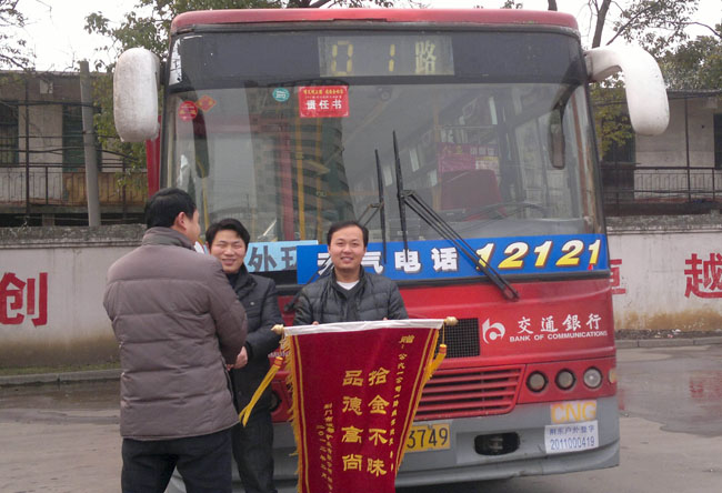 2月15日,荊門市銀都礦業(yè)有限公司總經(jīng)理鄒詩(shī)發(fā)等一行3人專程來到市公交一公司,向一公司負(fù)責(zé)人張忠林贈(zèng)送了一面寫著“拾金不昧、品質(zhì)高尚”的錦旗,專門感謝1路駕駛員李想拾到其遺失在公交車上15萬(wàn)貨款。