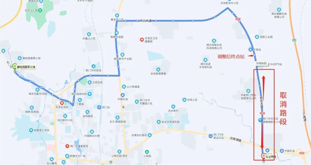 具體為:碧桂園翡翠公館—宏業(yè)物流調(diào)整為碧桂園翡翠公館—環(huán)球科陽(荊東大道),暫時(shí)取消荊東大道與長崗一路交匯處—宏業(yè)物流區(qū)間路段(具體走向圖見附件)。道路施工結(jié)束后即恢復(fù)原線路運(yùn)行。