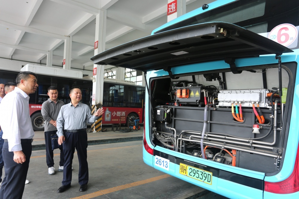 ▲市政府國資委副主任鄧興權(右一)到市公交集團安全檢查